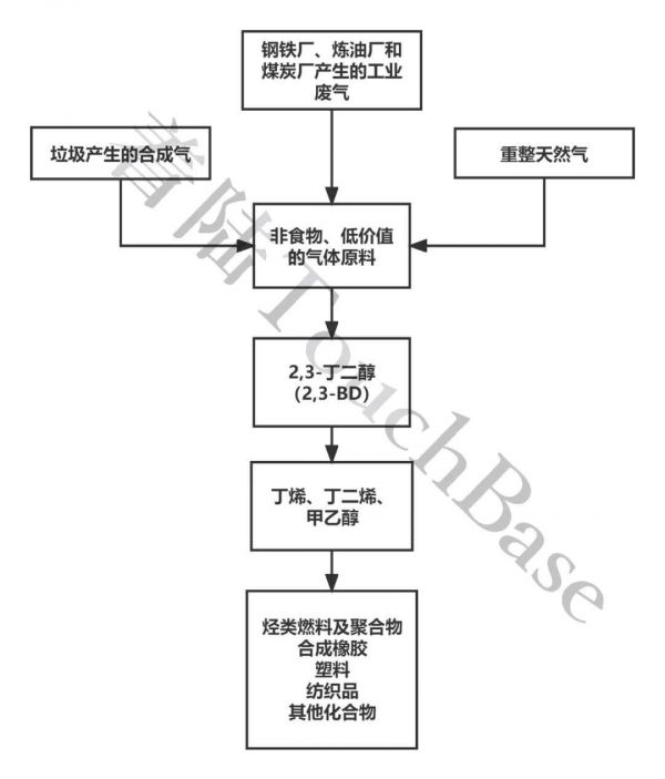 着陆TouchBase制图图 | LanzaTech利用气体发酵技术生产2,3-丁二醇流程