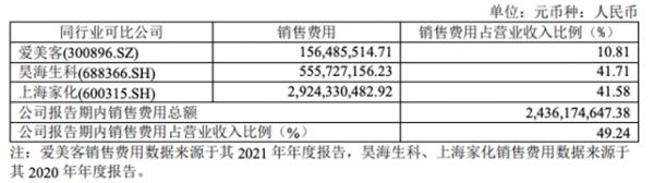 华熙生物和竞争者的销售费用。图片来源:华熙生物2021年年报
