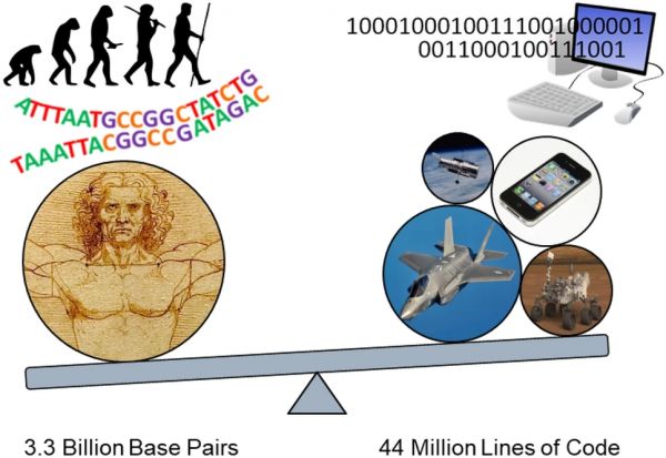 图 | 人类基因组与几个主要工程系统的复杂性比较(来源:Nature)