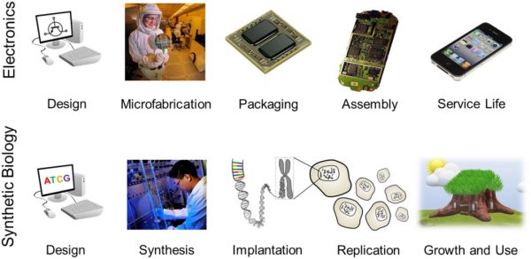 图 | 消费电子产品和合成生物学产品的制造流程比较(来源:Nature)