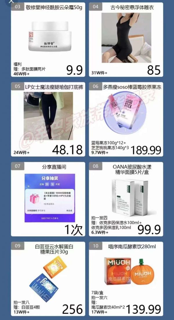 有用户发现,蛋蛋直播间最近多了一些“常客”。白芸豆、南瓜酵素、多燕瘦soso棒等产品,开始频繁出现在她的货架上。