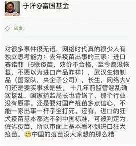 疫苗事件后于洋力挺国产疫苗秒删的“朋友圈” ,券商中国