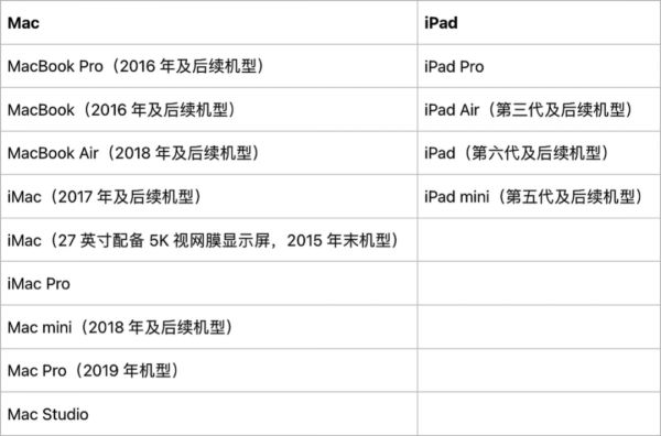根据 Apple 官网脚注的信息,Universal Control 功能适用于以下设备: