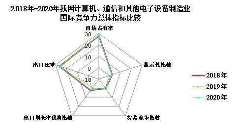 例如美国,2020年美国电子信息制造业出口下降4.24%,市场占有率排位由2019年的第三位下滑至第五位,国际竞争力综合得分100.59,较2019年下降0.06。韩国电子信息制造业国际竞争力综合得分在2020年为102.45,出口增长5.94%,但出口增长率优势指数只有0.3。