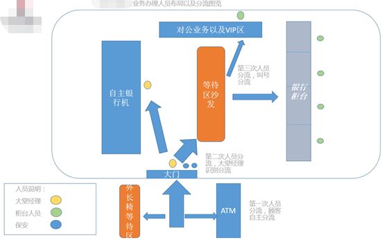 图五 国有银行业务办理人员布局以及顾客动线分流