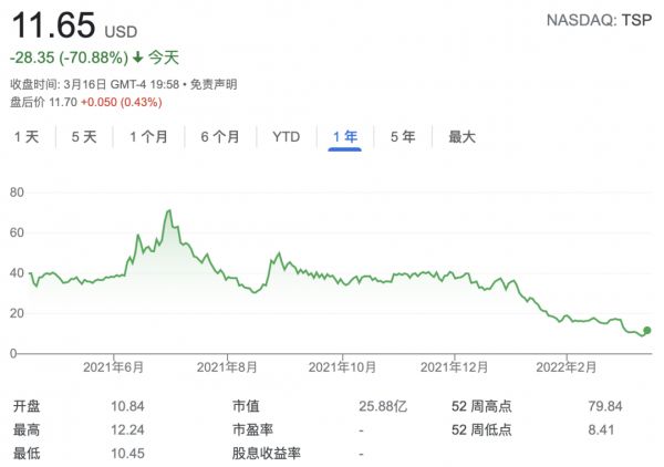 图森未来近1年在股市的表现