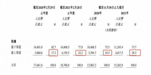 值得注意的是,截至2021年11月30日止九个月,直播销售额占线上销售额约30%。