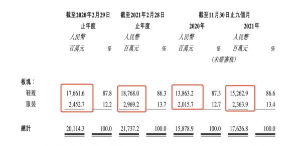 三是前百丽的经营业绩尚未恢复至其巅峰期的水平,但在逐年增长。2019/2020财年、2020/2021财年,百丽时尚鞋履业务收入分别为177亿元、188亿元,增长率为6.3%。截至2021年11月30日止九个月,公司鞋履业务实现营收153亿元,较2020年同期增长10.1%。