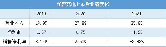 表面看起来,仍然具有极高的发展潜力。但在高营收的背后,1.25亿元的净亏损也让怪兽充电逐渐由盈转亏,销售净利率更是跌至了-3.48%。