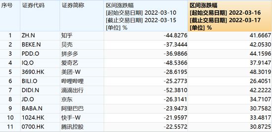 多支中概股股价也迎来暴利反弹,3月16日,腾讯收涨23.15%,阿里巴巴收涨27.3%,美团、快手涨幅超过30%。美国时间16日,贝壳盘中上涨64%,知乎上涨79.17%,滴滴涨42.09%。