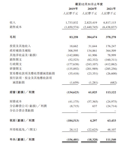 财务数据方面,2019年、2020年和2021年,中创新航的营业收入分别达17.34亿元、28.25亿元和68.17亿元,复合年增长率高达98.28%,相应的净利润分别为-1.56亿、-0.18亿和1.12亿元,公司在2021年实现了扭亏为盈。