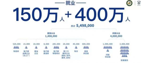 图源《2021电子烟产业蓝皮书》电子烟创造就业人数550万,
