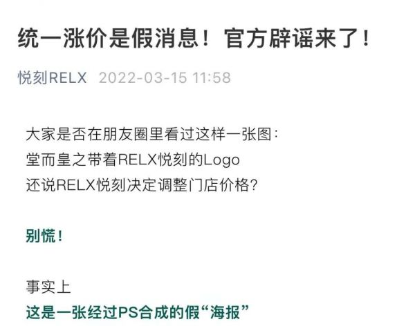 悦刻辟谣公告,图源悦刻官方公众号