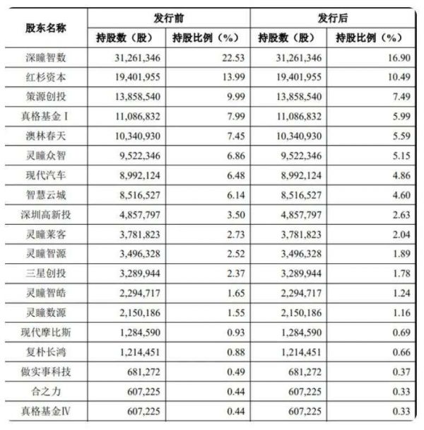 上市公告书显示,本次发行后,控股股东深瞳智数持有公司16.90%的股份,赵勇通过深瞳智数间接控制公司16.90%的表决权,并通过灵瞳众智、灵瞳莱客、灵瞳智源和灵瞳数源间接控制公司10.24%的表决权,合计控制公司27.14%的表决权。