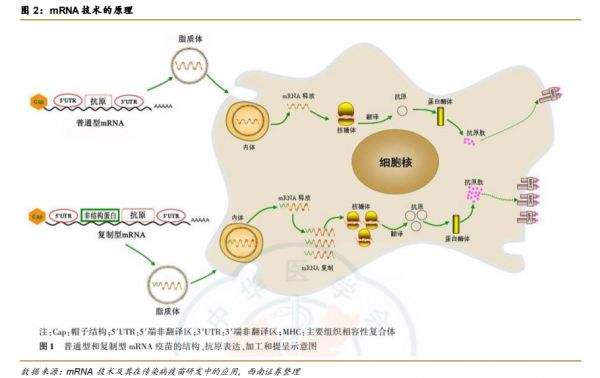 而mRNA疫苗是给了机体一张说明书,在得到病毒序列后进行人工合成,再通过mRNA技术进行包装,注入人体后,人体会合成病毒类似物,引起机体的免疫反应,相比于传统疫苗,理论上,mRNA疫苗更加灵活,研发时间更短。