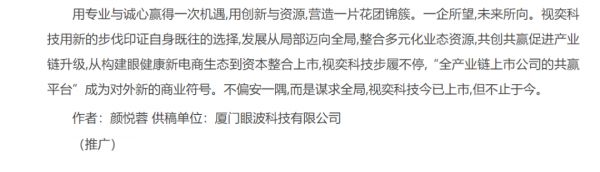 很多时候,“上市公司”都是一个极好的对外宣传噱头与品牌背书,因此会有视奕科技这样假冒上市的宣传出现。