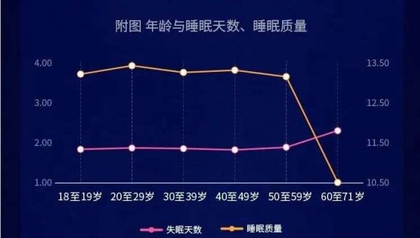 再次,60岁以上的老年人,不仅睡眠时长明显较低,而且睡眠质量远差于其他年龄段。