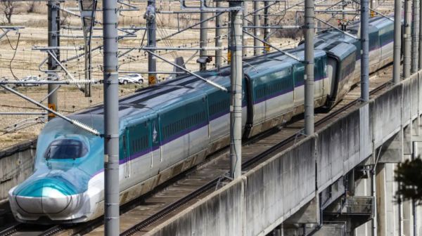 ▲强烈地震使一列东北新干线子弹头列车脱轨