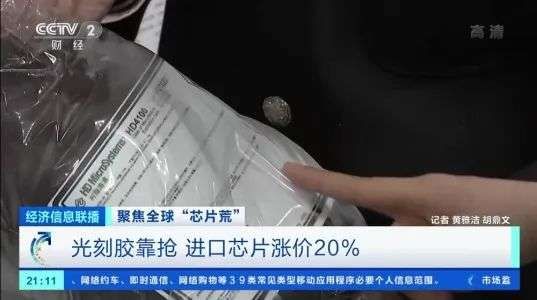 ▲央视报道“光刻胶靠抢,进口芯片涨价20%”画面