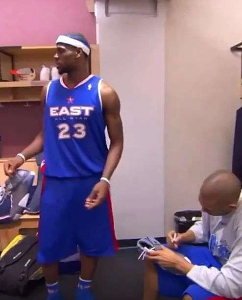 而自诩为NBA历史最伟大球员的詹姆斯也曾在2005年首次入选全明星赛后像个球迷一样,讪讪地在更衣室内拿着签字笔挨个向艾弗森、卡特、格兰特-希尔等大佬求签名。虽然如愿得到了签名,但也遭到了这帮老鸟的嘲弄调侃。