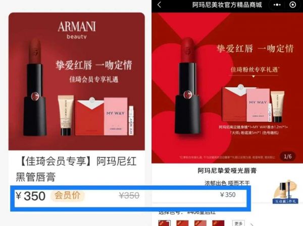 而阿玛尼的两款商品虽然标注了“会员价”“佳琦会员专享”字样,但就价格来看,所有女生小程序内价格并无优惠,和阿玛尼官方小程序价格一样。美ONE虽已经释放出了探索多元业务的信号,但电商平台化的试水目前似乎还仍处在初级阶段,并未展示出用户端的吸引力。