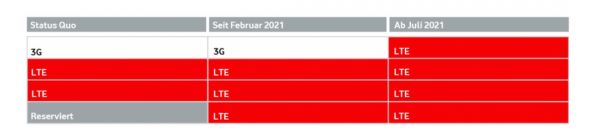 2021年4月,德国沃达丰宣布于2021年6月30日前彻底关闭3G UMTS 网络,以让“过时的3G网络为更现代的LTE网络腾出空间”。