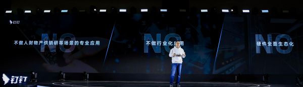 但很快,钉钉团队发现不对劲。什么都自己做,得建团队。当时钉钉只有500人,光是做硬件,已经把100多人耗了进去。他们意识到一件事情,不可能什么都自己做。