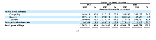 在年报中的数据口径,实际上是交付(Delivery)业务在公有云和企业云两块业务中的占比。