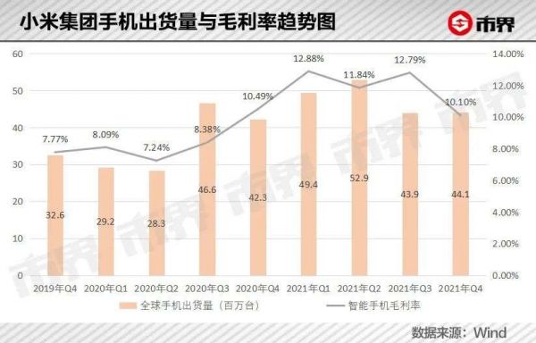 根据财报数据,单季度来看,小米手机业务毛利率在2021年前三季度都有较好的表现,但第四季度因为促销力度过大,对应毛利率仅为10.1%,甚至低于去年同期10.49%的毛利率。