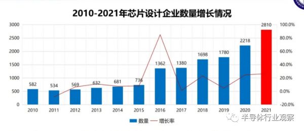 2010-2021年中国芯片设计企业数量增长情况(图源:ICCAD)
