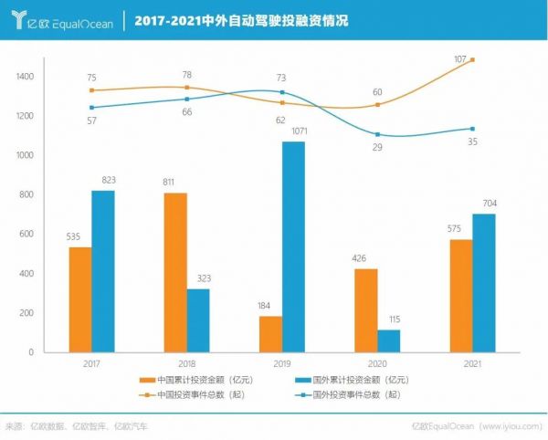 国外自动驾驶市场同样状态火热。亿欧数据显示,2021年,国外累计投资金额达704亿元。