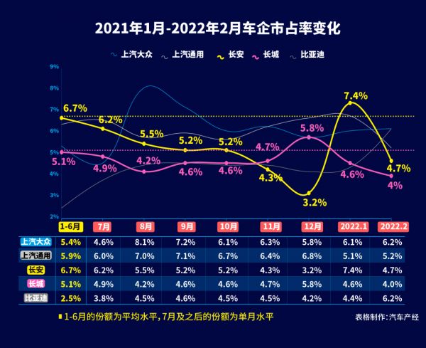 也就是说,如果说2021年1-6月的销量属正常表现,那么这二者在7月之后就基本没踩上正常的节奏。与之形成比较的是,上汽大众、上汽通用在去年下半年反倒有环比上涨的趋势。