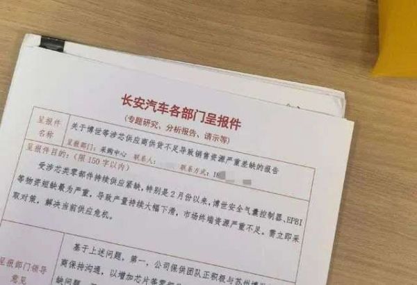 一份疑似“长安汽车各部门呈报件” 反映物资短缺