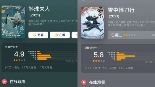 口碑方面,两部剧的豆瓣评分皆在及格线以下。