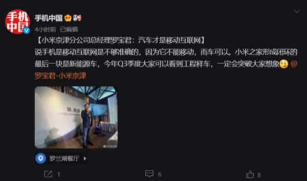 胡峥楠之所以没有直接进入小米汽车,可能是因为避免与吉利签署的“竞业协议”产生冲突,而顺为资本有关胡峥楠的这项人事变动,则被外界视作是小米汽车迎来了第一位车圈大佬。