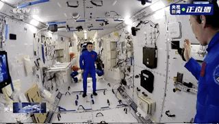 第二课里,三位太空教师不仅进行了魔法般的太空实验,还带大家参观了天和核心舱里的科技实验设备。冰墩墩更是“惊喜加盟”本次太空教学,与三位太空教师一起展现太空的奥妙。