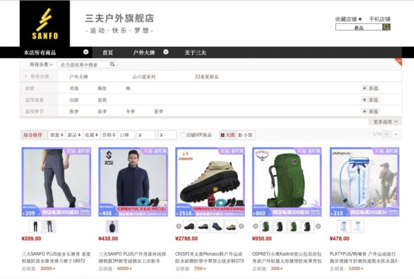 搜索国内探路者或三夫户外的各大电商旗舰店/专营店主页,可以直观看到其产品主要集中于两个板块:户外露营和徒步登山,涉及其他运动品类的产品几乎很少。如果想购买更全的品类、更高端或更专业的品牌,只能选择国外的户外运动品牌。