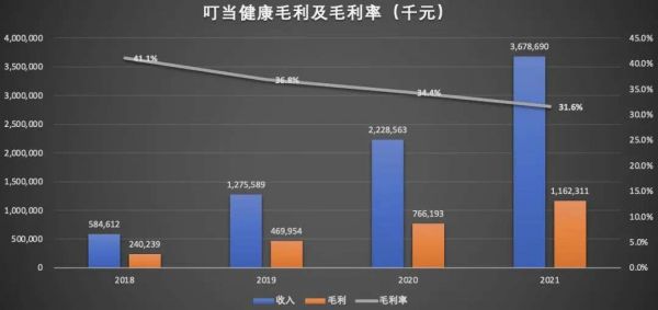 叮当健康2018年、2019年、2020年和2021年的毛利率分别为41.1%、36.8%、34.4%和31.6%,毛利率出现了下滑的情况。