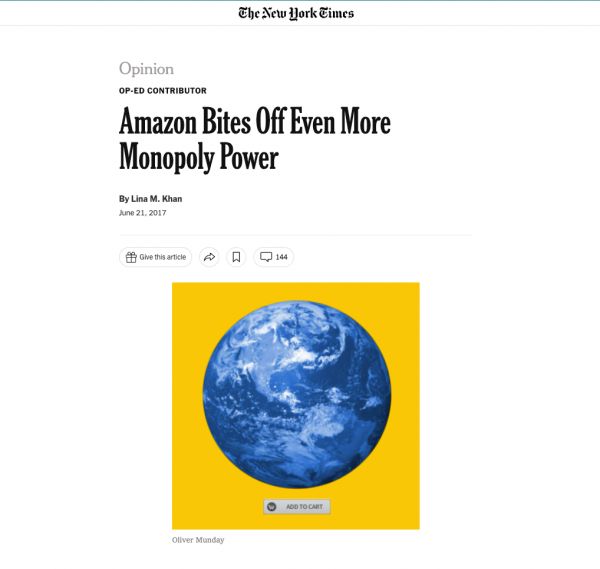 过去几年时间,丽娜汗在哥伦比亚大学法学院任教期间,与同事吴修铭(Tim Wu)不断呼吁加强对亚马逊和谷歌等互联网巨头的反垄断监管。这两位哥伦比亚大学学者也被认为是美国反垄断“新布兰德斯学派”(New Brandeis)的主要理论旗手。