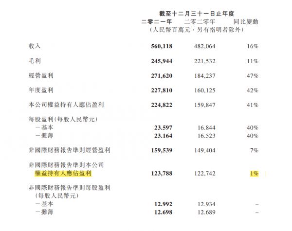 腾讯第四季度净利润(Non-IFRS)248.80 亿元,同比下降 25%;全年净利润(Non-IFRS)1237.88 亿元,同比微增 1%。继 2021 年第三季度净利下跌 2% 后,腾讯连续第二个季度出现净利负增长,全年的净利增幅则滑落至近十年低点。