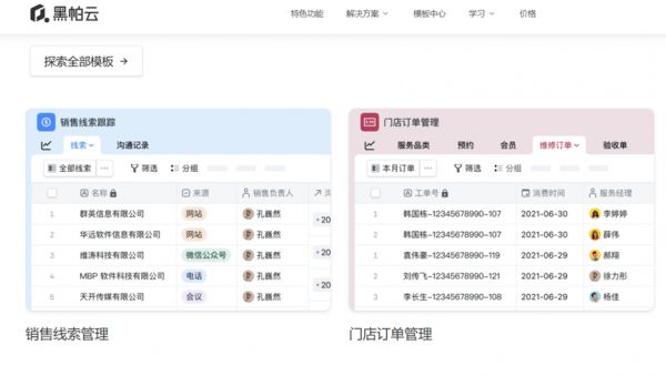 2019年,陈金洲再次创业,黑帕云诞生,定位是企业级数据协作平台。黑帕云的产品,相比 Excel 能做到多人协作和云端同步,相比软件开发商个性化定制的信息管理系统,搭建起来更为快速。线下门店实现订单从预约、到店、验收、到售后的全流程数字化管理,VC投后团队向项目创始人收集业务发展情况、重要人员异动情况、财务数据等其他信息,都有类似产品的用武之地。