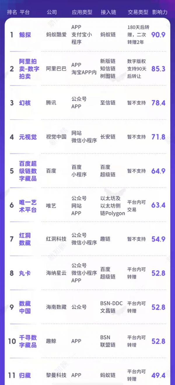 图源:新知榜,国内数字藏品平台影响力排名。