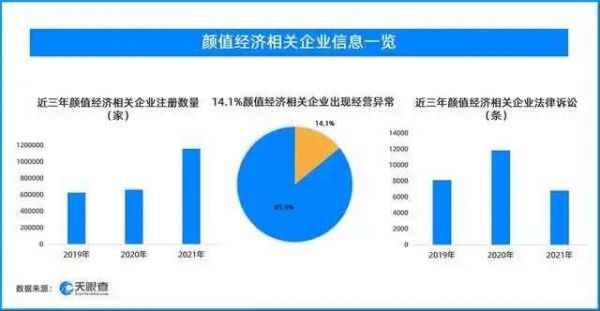 颜值经济催生下的医美同样具备医疗属性,但是在缺乏制度监管的情况下,黑医美已经成为中国医美消费领域最大痛点。有数据显示,过去数年里,我国每年在黑医美机构致残致死的人数大概10万人,行业合法医生仅27.7%,非法医美机构中90%医生设备都是假货。据天眼查APP数据不完全统计,2021年我国颜值经济相关企业共产生了3.8万余条被执行人信息,680余条行政处罚信息,80余条严重违法信息。