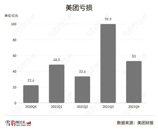 2022年3月25日,美团发布2021年Q4及全年财报,Q4总营收为495亿元人民币,同比增长30.6%。净亏损53亿元,同比扩大137%,这已是美团连续第5个季度亏损,不过本季度亏损环比已大幅收窄。