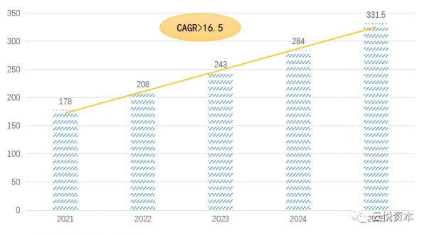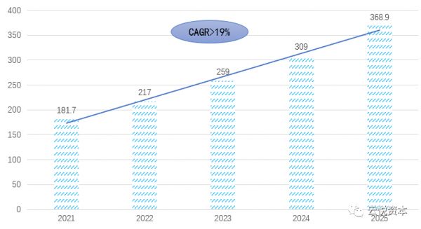 随着风光储一体化的快速落地,逆变器作为一体化产业链中的核心部件,主要职责是在风光发电并入电网的过程中的直流电变转换为交流电,以及将电网中的交流电转变为直流电储存在储能电池中,在风电、光伏和储能系统成本分别占5%、10%和20%,而IGBT/电容/电感占了逆变器原材料约36%的成本份额,与此同时市场以欧美日企业为主导,我们根据风光储从2021年至2025年的需求规模,假设毛利率在30%左右测算,发现2021年至2025年的市场规模在181.692亿元至368.928亿元左右,CAGR在19.4%。