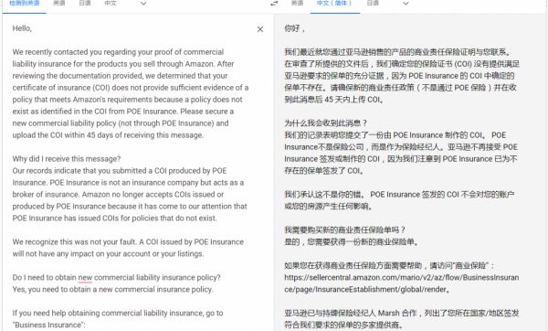 针对这次的POE保险问题,亚马逊称,目前保险虽然无效,但暂时不会对店铺产生影响,仍然可以继续运营。不过,亚马逊提醒卖家,在45天内上传新的保险证书(COI)。