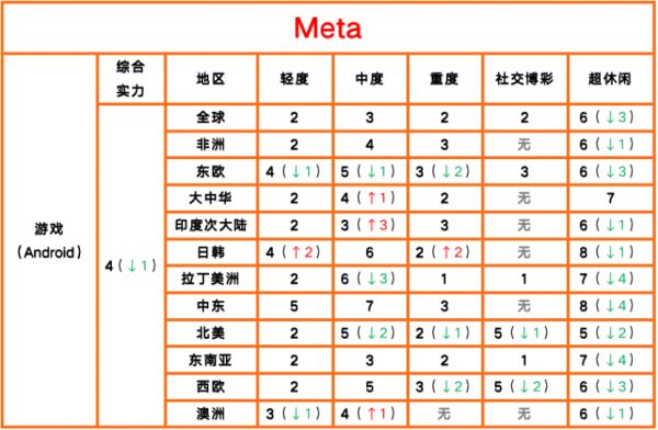首次以新名字亮相榜单的Meta,触目可见一片绿色,而这也只是意料之中地延续了上一版报告的下滑势头。