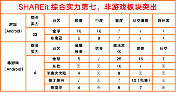 榜单中可见,SHAREit在全球轻度游戏和超休闲游戏领域占据主力,尚未涉足重度游戏、社交博彩类游戏。