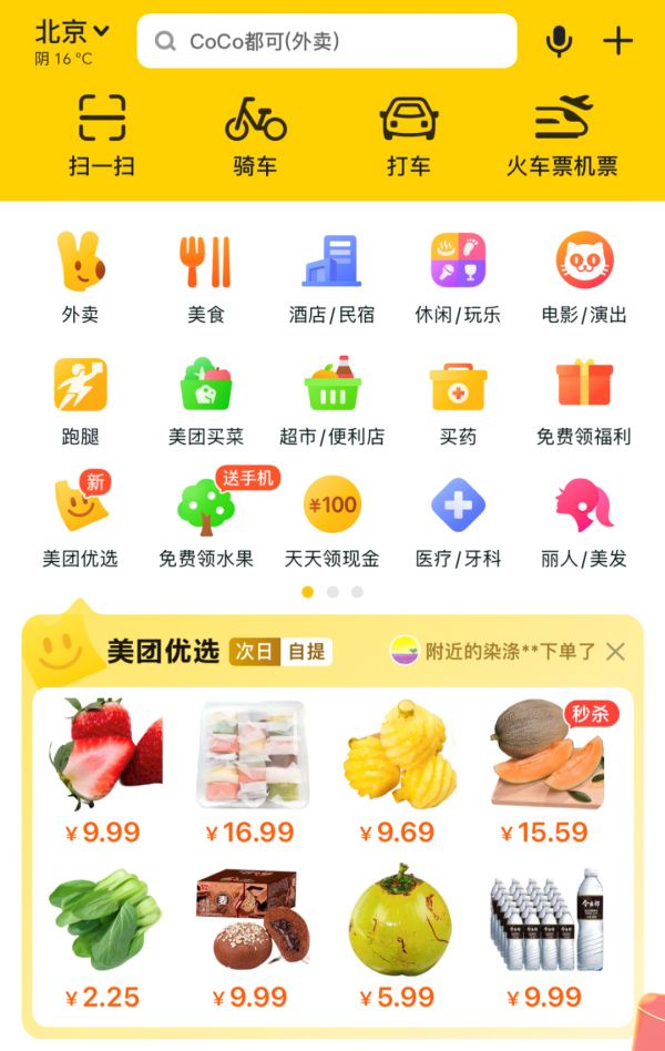 外卖、到店、酒店、旅游、社区团购、生鲜电商、打车、单车,以及2022年重新上线的电商业务,可以说,一个美团App装下了饿了么、携程、叮咚买菜、多多买菜、滴滴等多个App的功能。