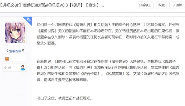 14年“魔兽玩家吧”的新吧规